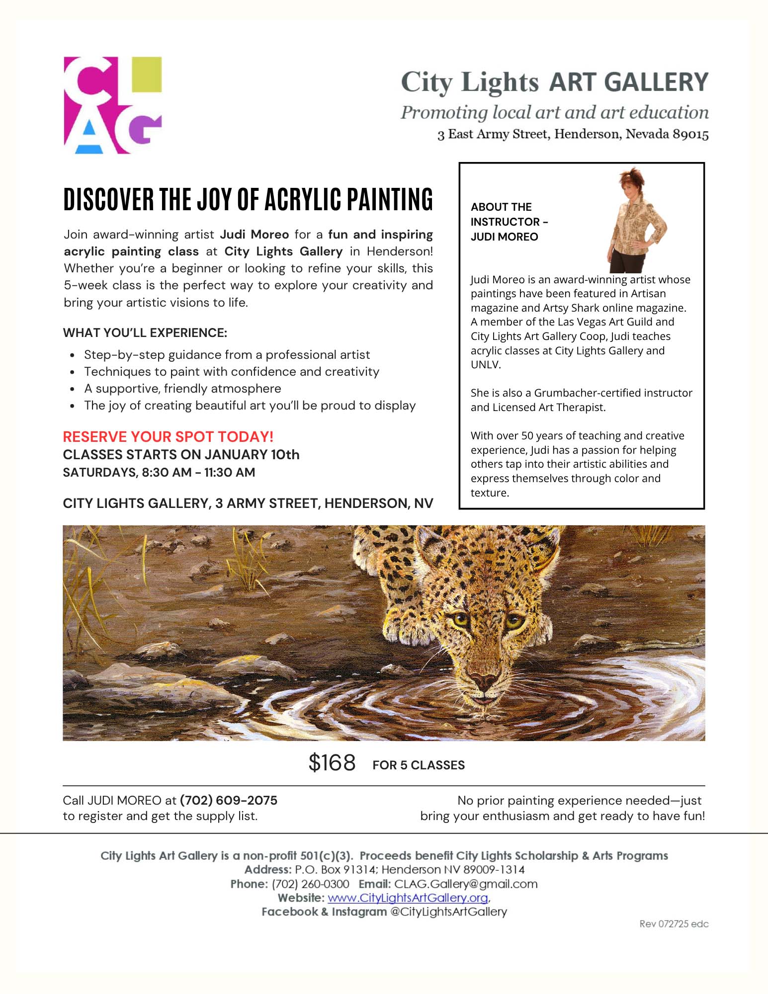 We wish to extend our deepest gratitude to the Nevada Arts Council, www.nvartscouncil.org, the National Endowment for the Arts, www.arts.gov for supporting City Lights Art Gallery through the CARES Grant and FY23 Project Grant. The grants support the gallery’s mission of promoting local artists and art education, while raising funds for the gallery’s scholarship fund for high school students who plan to pursue a higher education with a major in the arts. Thank you!!!